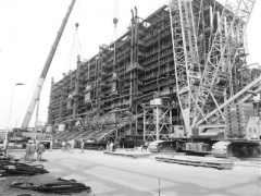 圖為吊裝現場。 近日,石化四建吊運公司員工順利完成中沙(天津)石化乙烯擴能改造項目新增裂解爐輻射室35軸鋼結構片吊裝。 由石化...