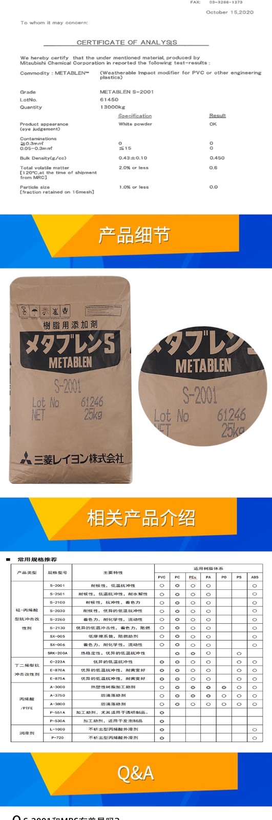 - 日本三菱S2001增韌劑 塑料改性 PC增韌耐候耐寒 麗陽MBS S-2001 物性表, 日本三菱S2001增韌劑 塑料改性 PC增韌耐候耐寒 麗陽MBS S-2001 產(chǎn)品參數(shù),日本三菱S2001增韌劑 塑料改性 PC增韌耐候耐寒 麗陽MBS S-2001 性能表,日本三菱S2001增韌劑 塑料改性 PC增韌耐候耐寒 麗陽MBS S-2001 出廠報告, MSDS,, 物質(zhì)安全資料表, UL黃卡,{ SGS報告, RoHS, 食品級認證, NSF飲用水標準, 產(chǎn)品資料, 產(chǎn)品性能, 出廠報告, 原廠原包, 代理商, 熱變形溫度, 熔指數(shù), 流動系數(shù), 抗沖擊性能、沖擊強度, 低溫韌性、低溫抗沖擊性能, 熔體流動系數(shù)、熔體流動速率, 加工工藝、加工參數(shù)、加工溫度, 歐盟RoHS 德國FDA 美國FDA 日本FDA