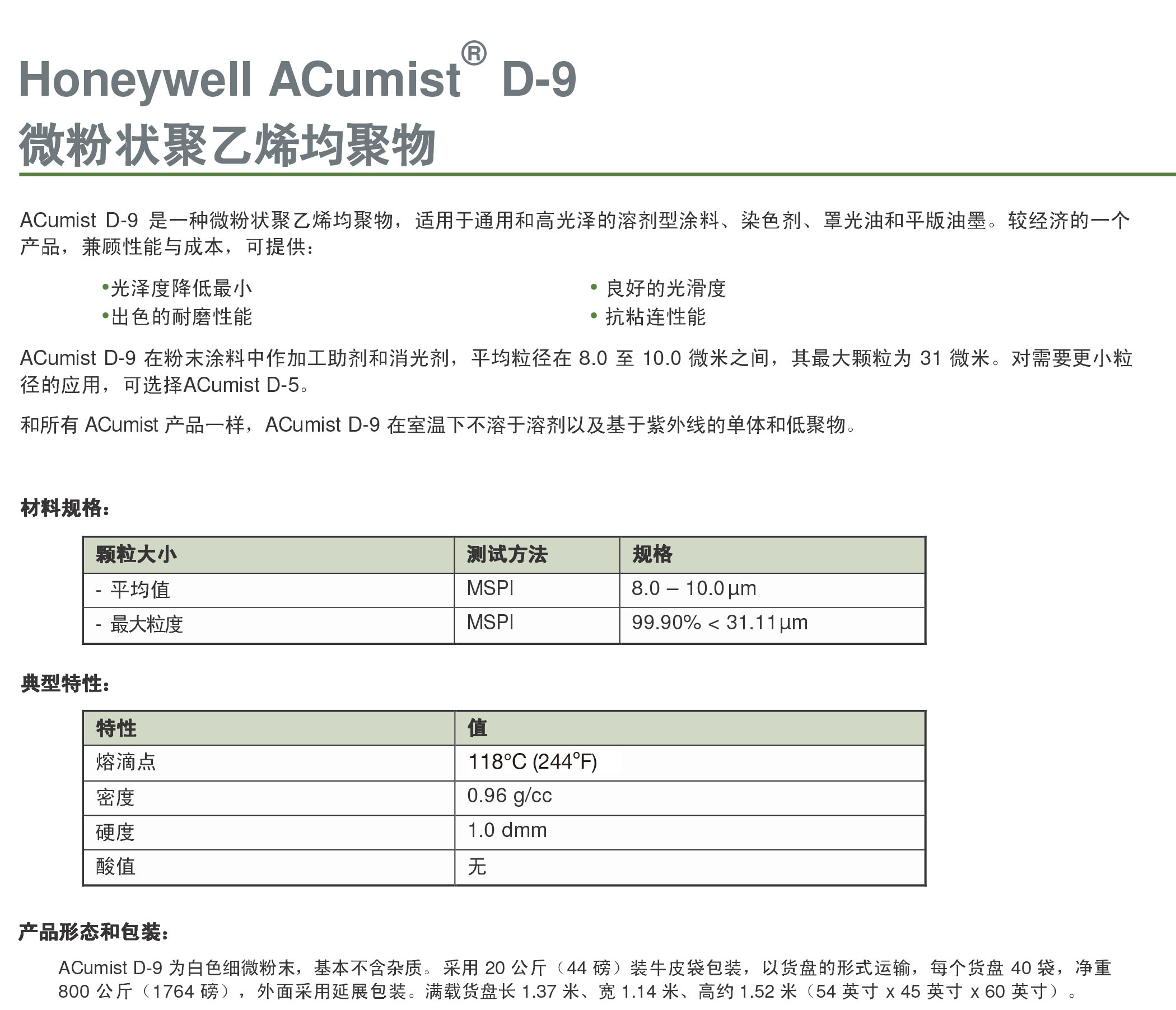 - 美國霍尼韋爾蠟粉 D-9 經(jīng)濟(jì)型的聚乙烯微粉D9 物性表, 美國霍尼韋爾蠟粉 D-9 經(jīng)濟(jì)型的聚乙烯微粉D9 產(chǎn)品參數(shù),美國霍尼韋爾蠟粉 D-9 經(jīng)濟(jì)型的聚乙烯微粉D9 性能表,美國霍尼韋爾蠟粉 D-9 經(jīng)濟(jì)型的聚乙烯微粉D9 出廠報告, MSDS,, 物質(zhì)安全資料表, UL黃卡,{ SGS報告, RoHS, 食品級認(rèn)證, NSF飲用水標(biāo)準(zhǔn), 產(chǎn)品資料, 產(chǎn)品性能, 出廠報告, 原廠原包, 代理商, 熱變形溫度, 熔指數(shù), 流動系數(shù), 抗沖擊性能、沖擊強(qiáng)度, 低溫韌性、低溫抗沖擊性能, 熔體流動系數(shù)、熔體流動速率, 加工工藝、加工參數(shù)、加工溫度, 歐盟RoHS 德國FDA 美國FDA 日本FDA